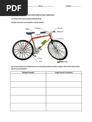 Perkara sedemikian sesuai untuk perjalanan jauh kerana ia juga boleh disimpan dalam beg pakaian atau beg perjalanan padat. 48 02 BT RBT TG2 2018-BAB 22a-Watie-Finindd 48 7617 330 PM Aplikasi Teknologi BAB 2 223 Menghasilkan Lakaran 3D Reka Bentuk Gajet yang Menggunakan Komponen Sistem Mekanikal yang Dipilih Setelah pereka bentuk mengenal pasti idea inovasi yang akan dilakukan pada gajet. Reka Bentuk Basikal.