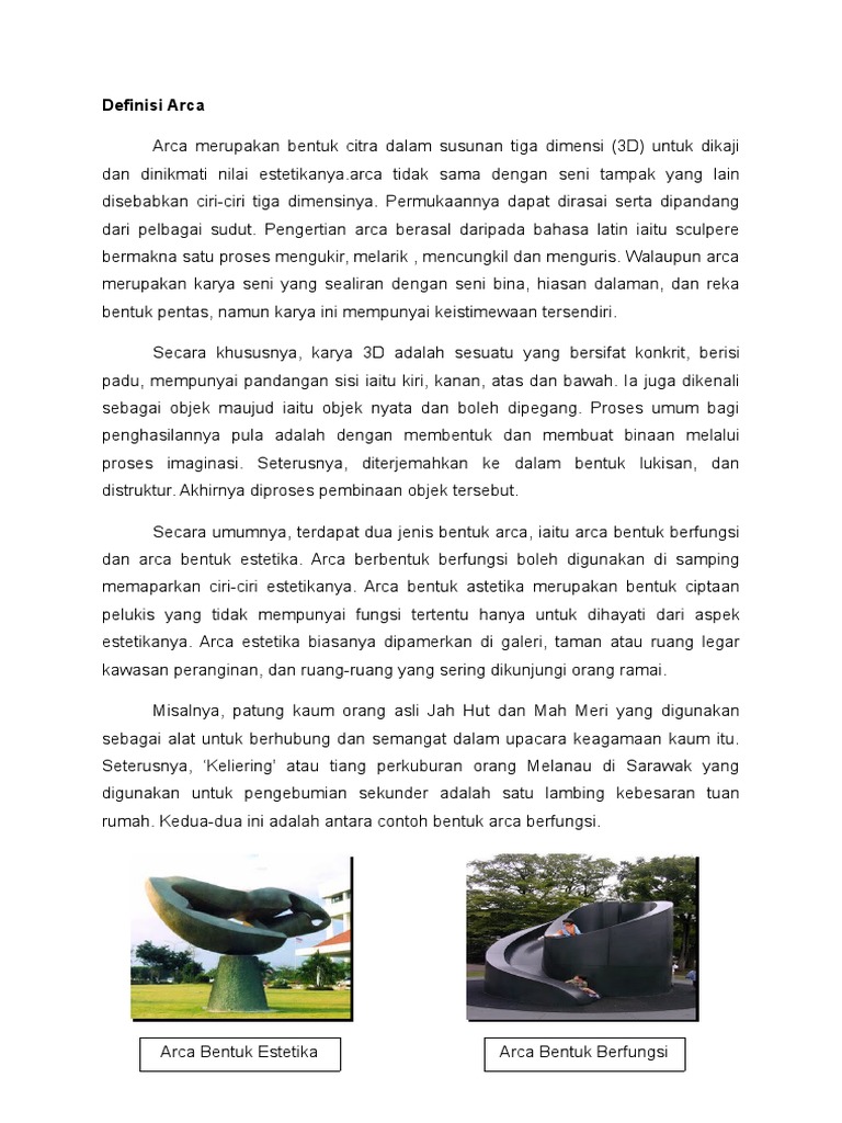 Pengertian arca berasal daripada bahasa latin iaitu sculpere bermakna satu proses mengukir melarik mencungkil dan menguris. Portfolio kajian anda hendaklah mengandungi perkara berikut. PENDIDIKAN SENI VISUAL TINGKATAN 1 KSSM TAHUN 2021.